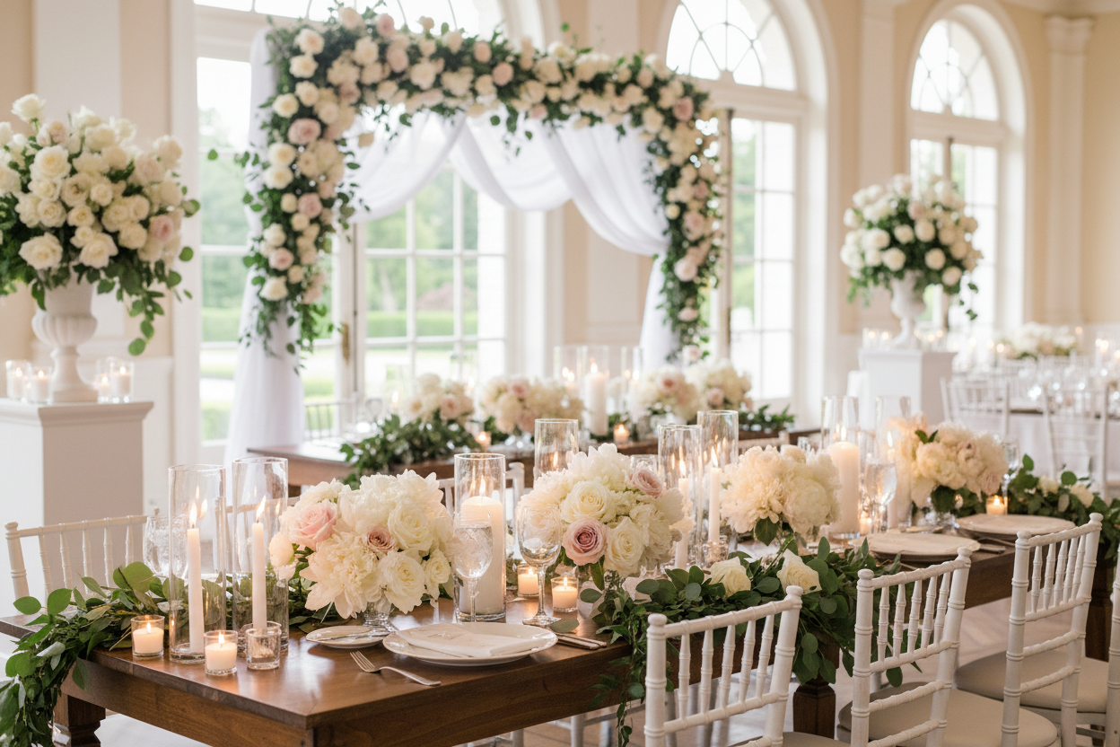 針對不同類型的婚禮,Lavish Florist 提供定制化佈置方案,確保場景設計與婚禮形式高度契合。飲宴形式婚禮,以「莊重不失溫馨」為核心,搭配華麗主背景、精緻餐桌花藝與氣派花柱,採用暖光層次照明,契合家庭聚會的溫情屬性,同時兼顧用餐體驗與攝影效果;雞尾酒會形式婚禮,主打「輕鬆雅致」的氛圍,採用簡約花柱、小巧centerpiece與靈動地花點綴,搭配開放式佈局,既保證賓客交流的舒適度,又通過花藝細節提升空間格調。草地婚禮深度融合自然韻味,以原生綠意為基底,選用清新系花材,打造花藝拱門、地花步道與油畫架打卡點,感受自然,突顯簡潔純粹